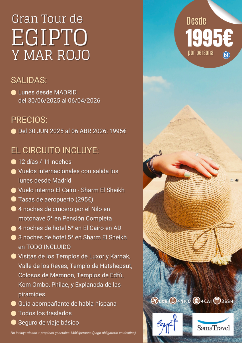 "Gran tour de EGP y Mar Rojo" 12 días crucero +Cairo +playa TI [Desde Mad y Bcn] (30jun-06jun26) *desde 1995€*