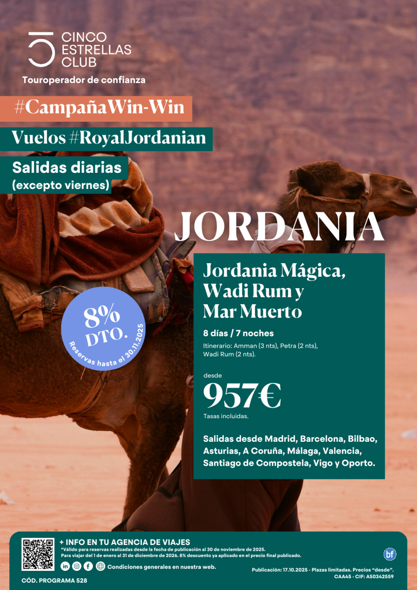 Win-Win 8%dto hst 30.11 Jord.Mág.Wadi Rum y MarMuerto dsd 957€ sal.dsd mad,bcn,bio,ovd,lcg,agp,vlc,scq,vgo,opo